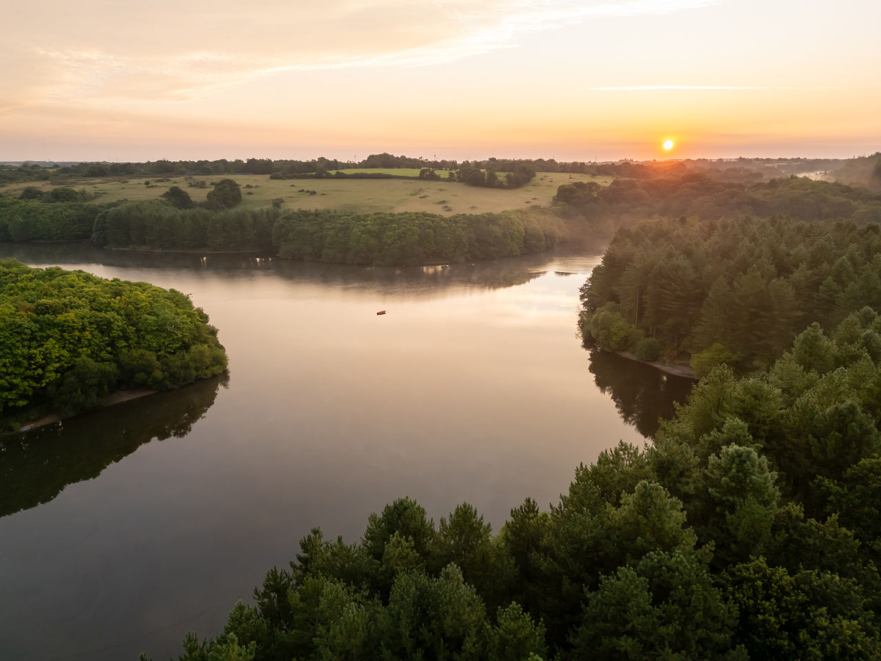 Au cœur du Kreiz Breizh, le lac de Kerne Uhel déploie ses 74 hectares d’eau bordé par la nature sauvage entre Trémargat, Lanrivain et Peumerit-Quintin.