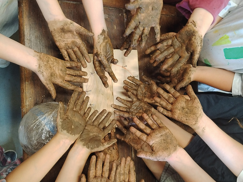 Après une balade dans le monument à la recherche des hirondelles et de leur habitat, chacun réalise son propre nid.