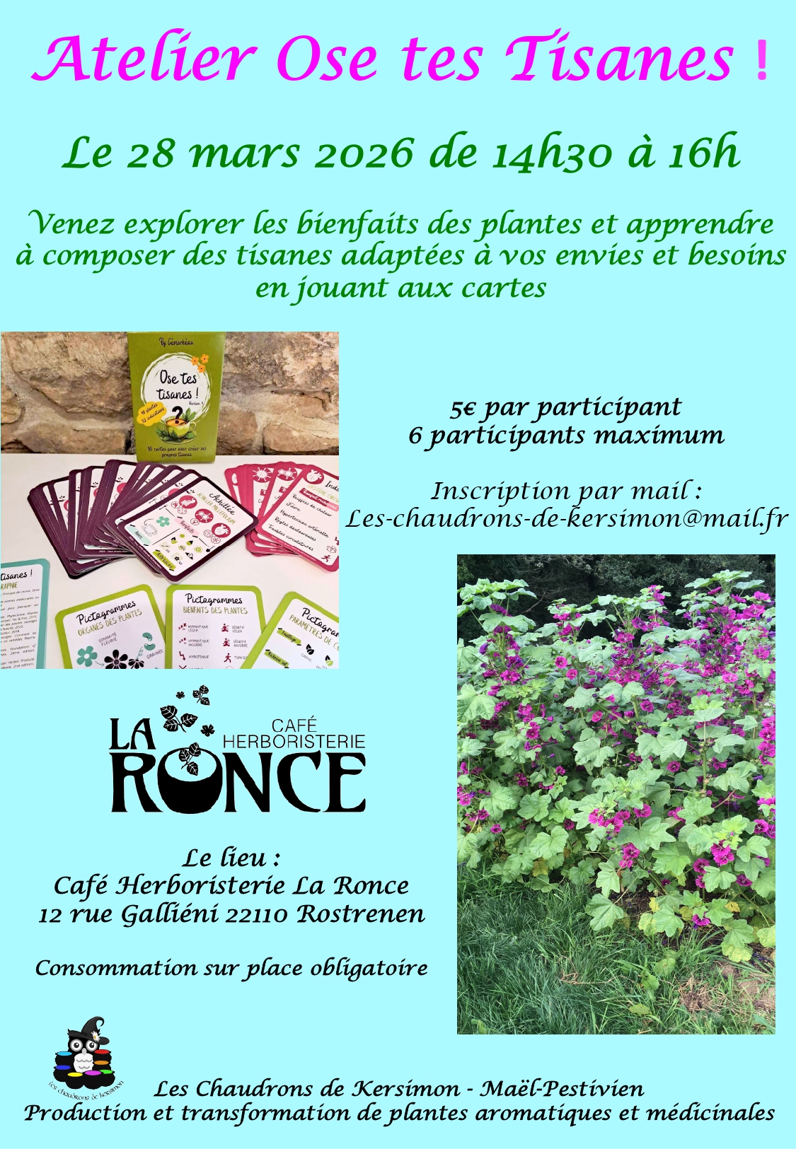Chloé Gambard, productrice de plantes à Maël-Pestivien, vous propose un atelier pour apprendre à composer sa tisane, selon vos envies et besoins.