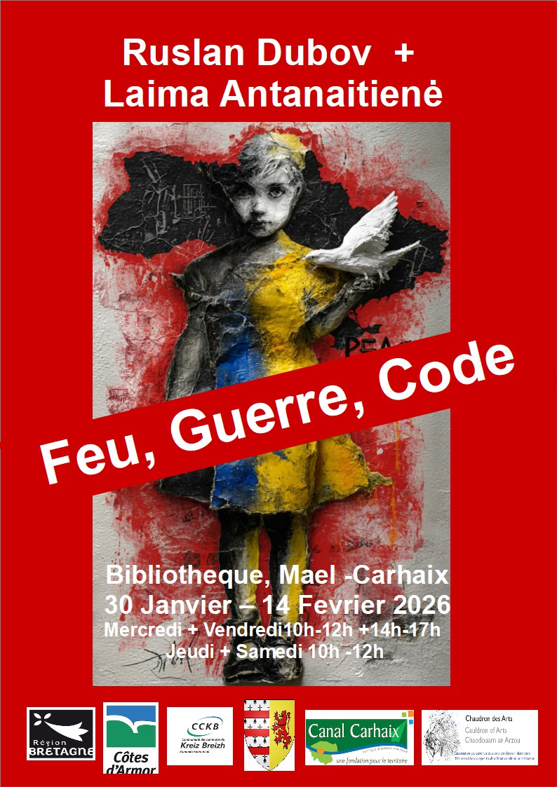 L’exposition «Feu, Guerre, Code» présente des œuvres créées par deux artistes originaires d’Estonie et d’Ukraine, Laima Atanaitiené, Ruslan Dubov, oeuvres imprimées par l’association. Ils vivent sur la ligne de front mais continuent à créer malgré tout. Ils utilisent tous les deux l’intelligence artificielle (IA), Témoignage ? Art authentique ? Aux visiteurs de décider.