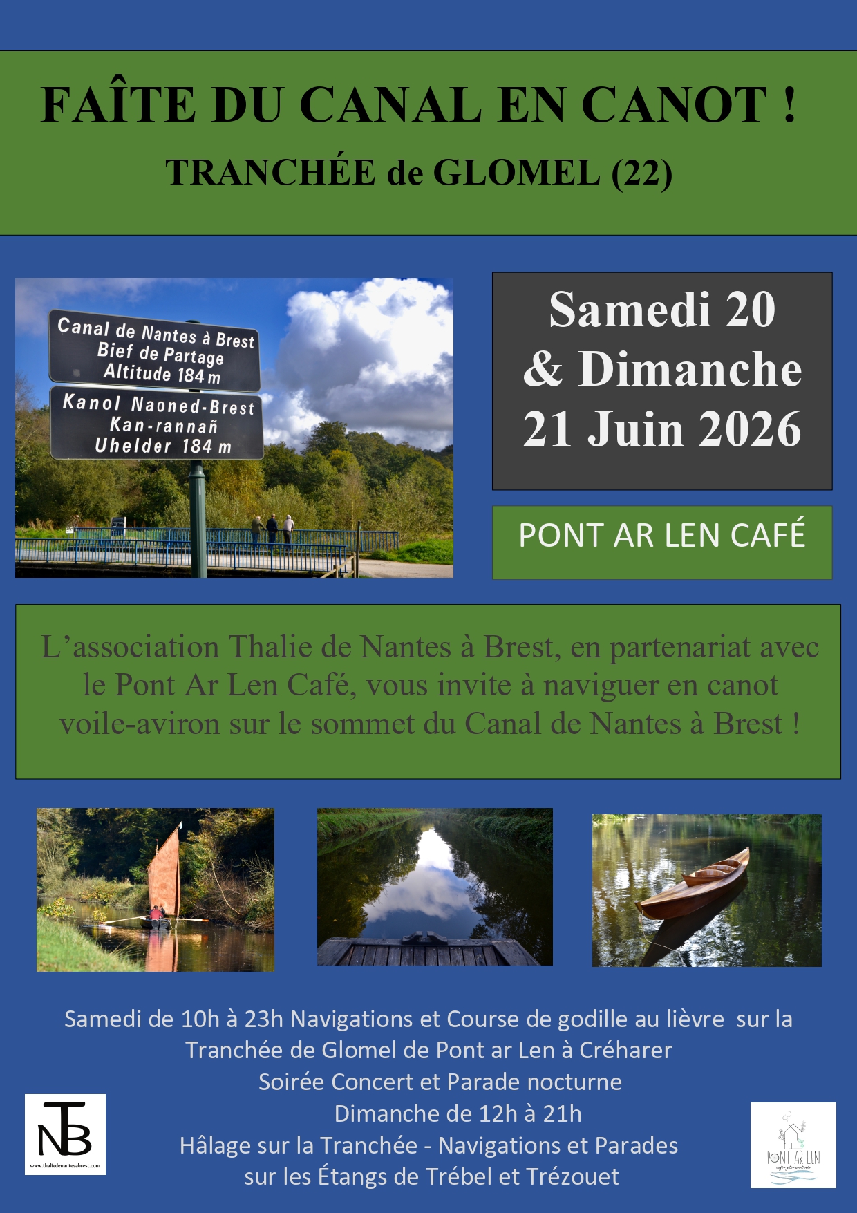 Course de godille au lièvre, concert, parade nocturne aux lampions sur la tranchée, navigation et parade sur les étangs de Trébel et Mézouet, déambulation à la bricole et halage sur la tranchée. Exposition de photos « Canal, mon beau canal ». Restauration sur place.