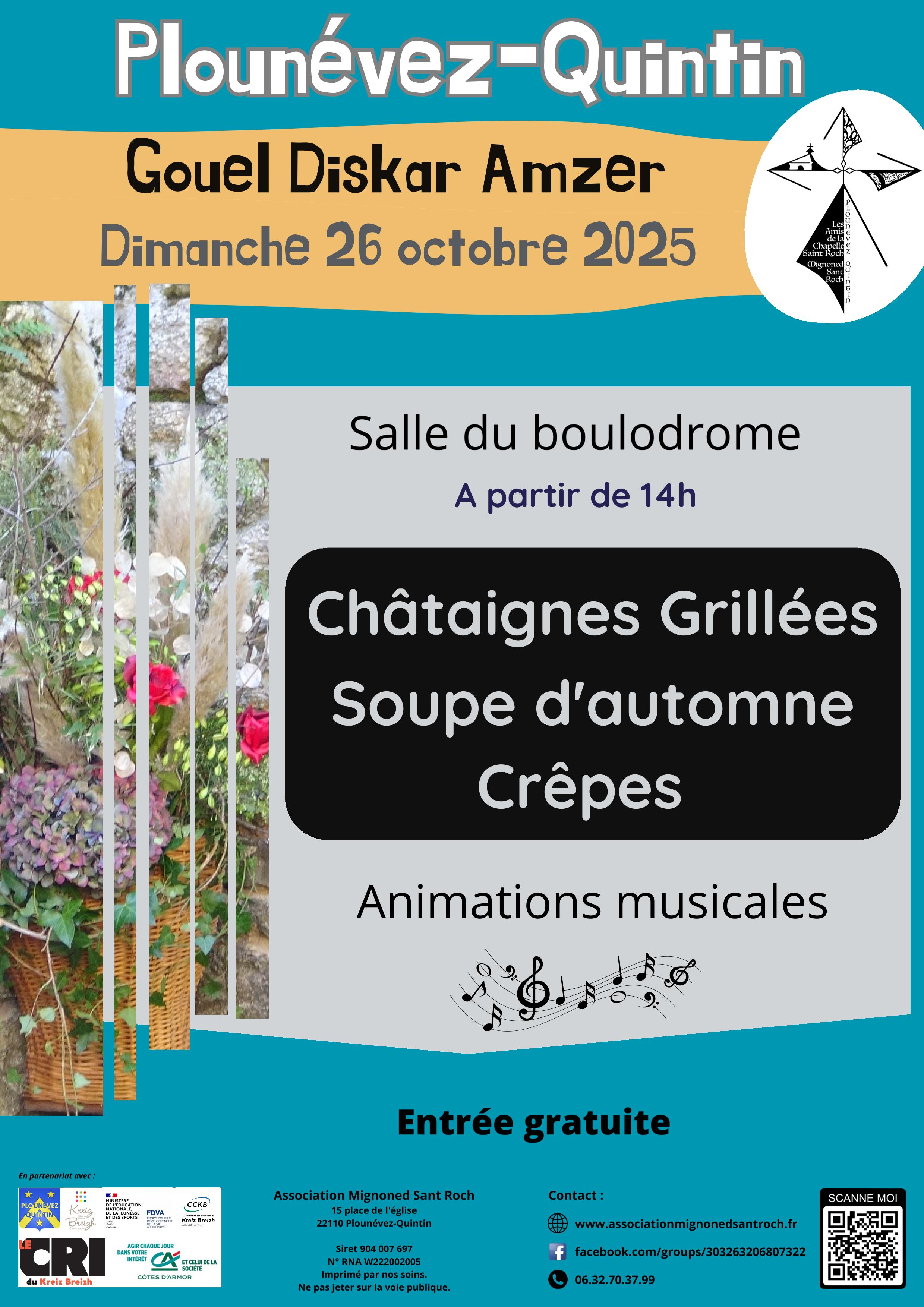 Au programme : châtaignes grillées, crêpes toutes chaudes et soupe de potiron, pour réchauffer petits et grands. Laissez-vous envelopper par l’ambiance musicale et festive qui donnera à ce dimanche des airs de fête et de veillée d’autrefois.