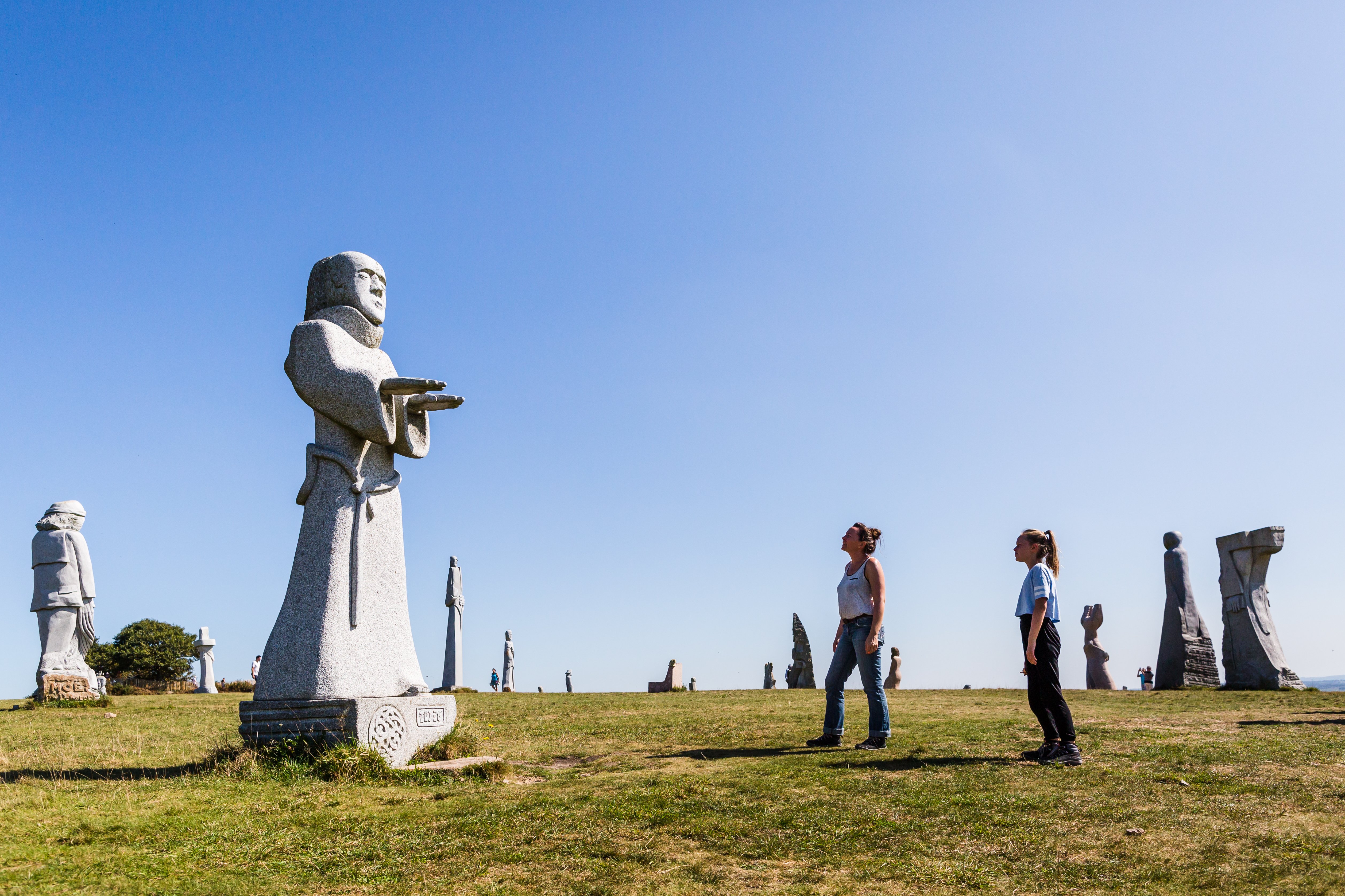 La Vallée des Saints, un pari fou pour l’éternité ! Laissez-vous surprendre par ce lieu enchanteur, installé autour d’une motte féodale du XIe siècle, qui vous offre une vue panoramique sur le Centre-Bretagne. Ce site original a fait le pari d’allier création artistique et mise en mémoire du patrimoine breton. Ici, ce sont les saints bretons, personnages à la fois historiques et légendaires du Moyen-Age, qui reprennent vie dans des statues de granit de 3m à 6,50m de haut – plus de 200 statues à voir.