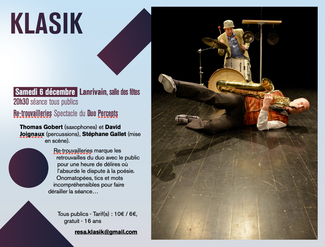 Thomas Gobert (saxophones) et David Joignaux (percussions), Stéphane Gallet (mise en scène).