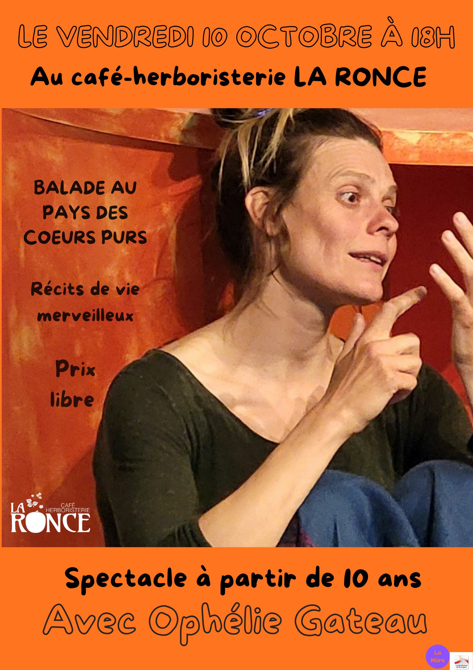 Venez nombreux.ses le vendredi 10 octobre à 18h, au café-herboristerie la Ronce, pour découvrir le spectacle d’Ophélie Gateau, « Balade au pays des cœurs purs » !