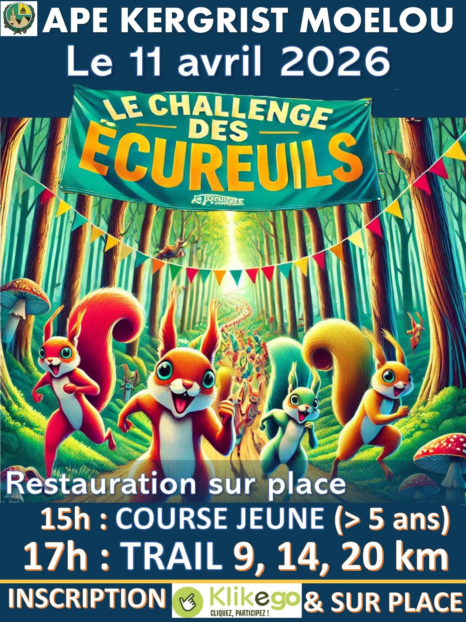 Le Trail des Écureuils à Kergrist-Moëlou met à l’honneur le territoire à travers des parcours nature accessibles à tous. Événement convivial et local, il valorise la pratique sportive dès le plus jeune âge avec des courses enfants et ados, au cœur du Kreiz Breizh.