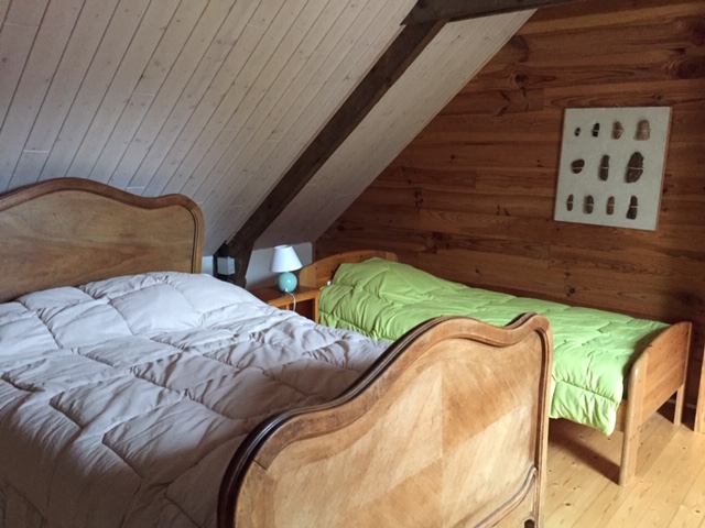 A l’étage : 2 grandes chambres (1ch avec 2 lits 1 pers., 1ch avec 2 lits 1pers et 1 lit 2 pers)