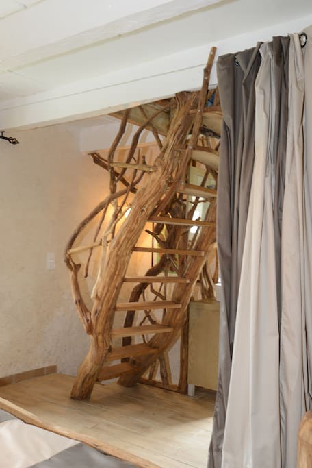 Sa rénovation a été effectuée avec des matériaux nobles et écologiques : bois de la forêt, enduit chanvre Bio et chaux.