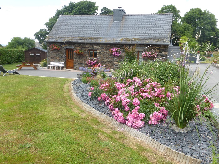 au coeur de la Bretagne, maison de caractère en pierre de schiste du pays, situé dans un ensemble de 2 gîtes indépendants sur une propriété d’ 1ha. allée véhicule commune aux 2 gîtes. Gîte très fleuri et restauré avec soin, vous apportera confort et calme. A proximité des sites touristiques du Centre Bretagne, vous aurrez plaisir à vous promener sur les bords du Canal de Nantes à Brest, à découvrir le Lac de Guerlédan, vous apprécirez les nombreux circuits de randonnée et les trésors de notre patrimoine rural.