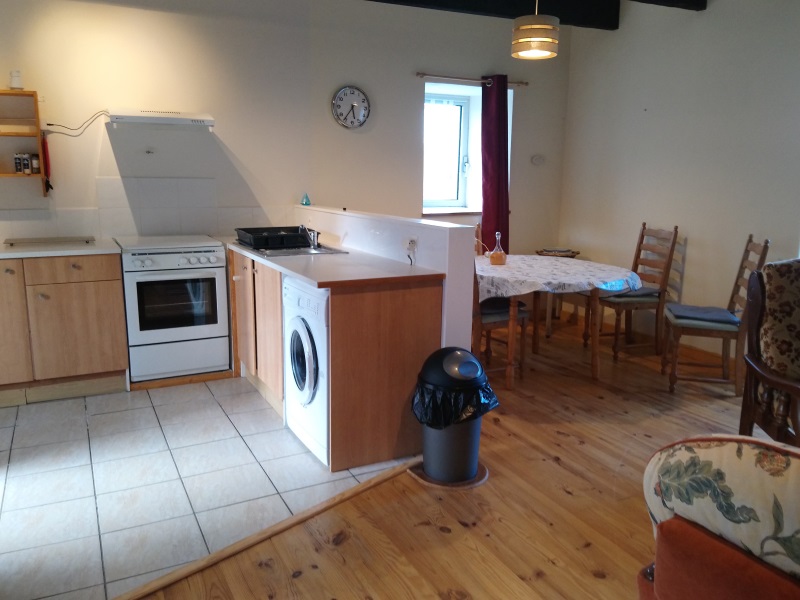 Ce gîte se compose d’un rez de chaussée (cuisine/salon) avec un coin bibliothèque TV. A l’étage, un espace bureau, deux chambres (2 lits de 2 pers.) et une salle d’eau. A l’extérieur un abri couvert, un jardin et un coin terrasse/détente. Un barbecue est à disposition sur demande.