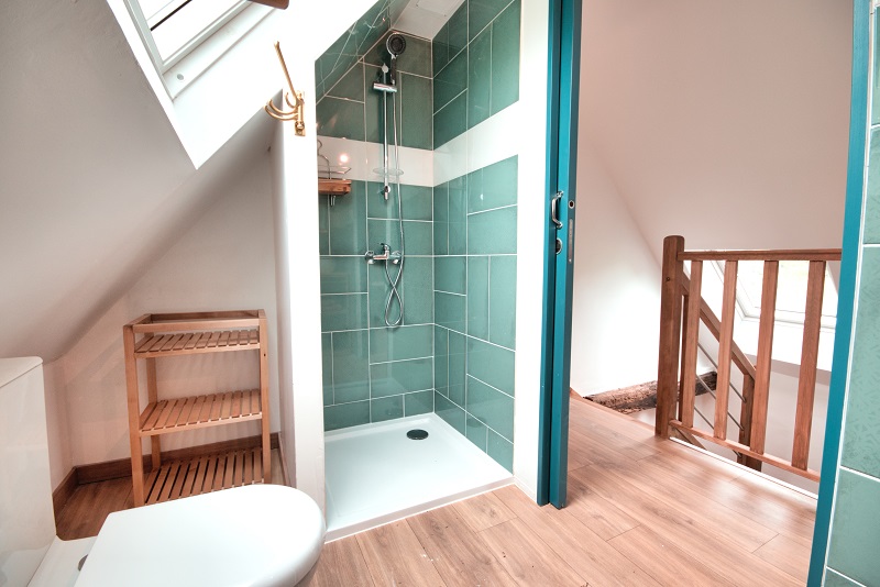 A l’étage : 1 chambre (1 lit 2pers), salle d’eau et wc