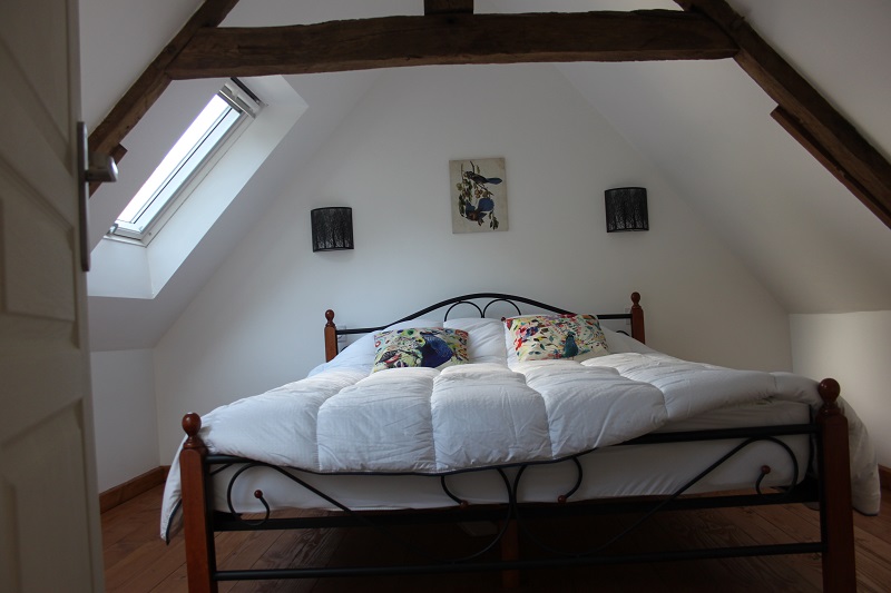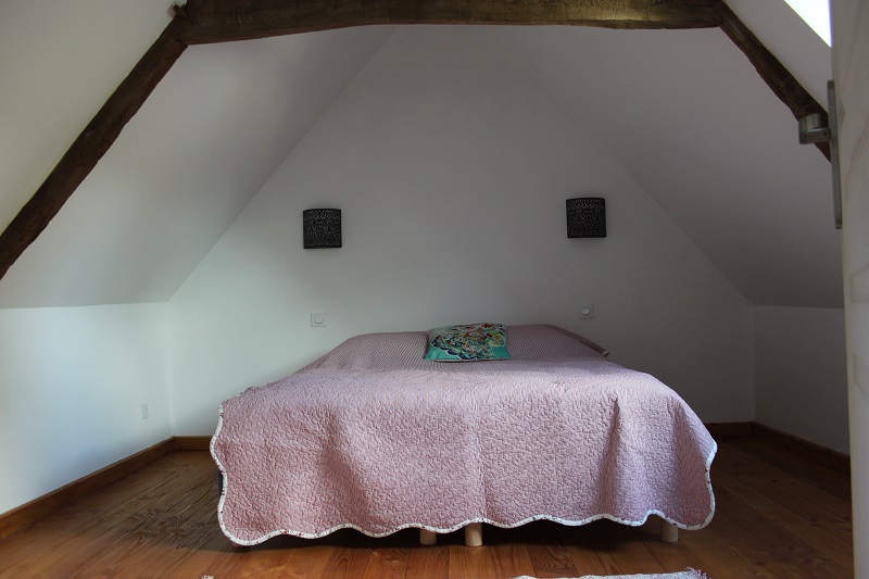 A l’étage : 2 chambres (2 lit de 1pers, 1 lit de 2pers), wc et point d’eau