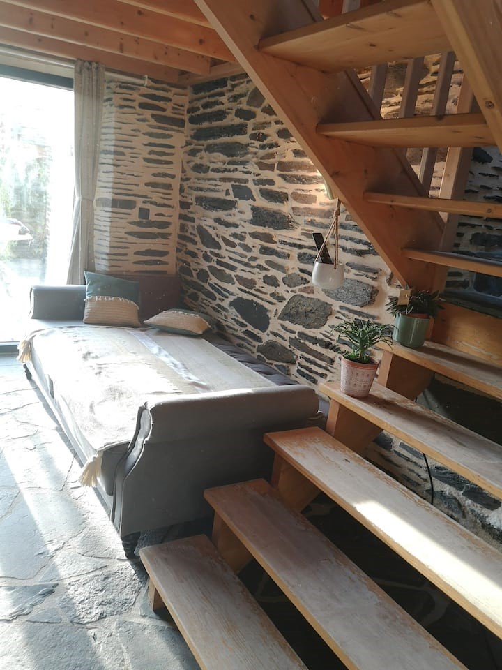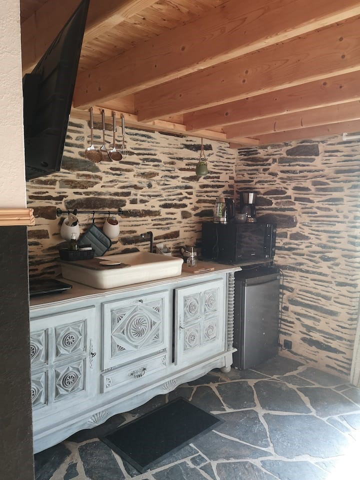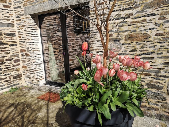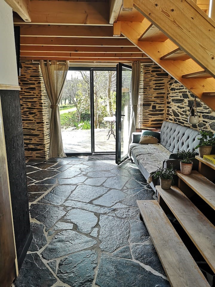 Thierry et Elodie vous accueillent à Tan Ar Stered, à 500m du Canal de Nantes à Brest et de la vélodyssée, dans un cadre de verdure apaisant, avec une vue imprenable sur la forêt de Quénécan. Ce studio, dans une ancienne maison rénovée en schiste typique de la région du Centre Bretagne, se trouve à 5km de Gouarec, proche de toutes commodités et services (épiceries, restaurants, boulangerie, banque…)