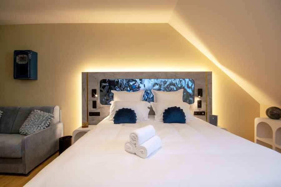 Découvrez les chambres élégantes de l’hôtel Jeanne & Jules, au cœur de Rostrenen. Les 15 chambres, allant des catégories Confort à Prestige, offrent une décoration soignée et des équipements haut de gamme. Vous apprécierez l’atmosphère chaleureuse et authentique, idéale pour vos séjours en amoureux, en famille ou professionnels.