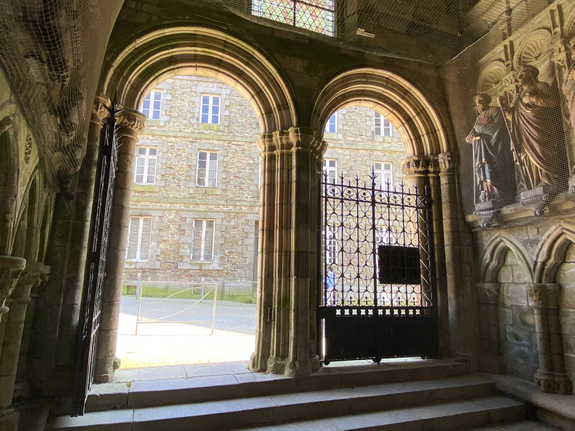 Au niveau du porche, on trouve aujourd’hui douze statues des apôtres en bois polychrome, sculptées en 1880 par l’ébéniste Paul Chamaillard. Un autre artiste rostrenois, Olivier Perrin, a offert à la collégiale son tableau intitulé “L’Assomption”.