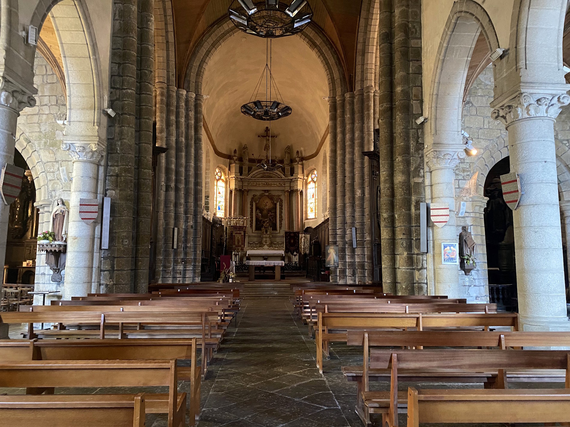 La collégiale Notre Dame du Roncier se dresse au cœur de Rostrenen, au sud des Côtes d’Armor. Son origine remonte à une chapelle seigneuriale, installée au sein du château des barons de Rostrenen, qui fut élevée au rang d’église en 1295, à la suite du “miracle de Rostrenen”.