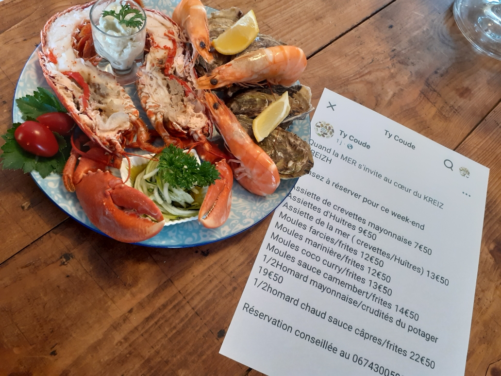 Spécialiste des produits de la mer (homard breton, huîtres, poissons).